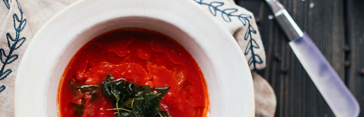 Le gaspacho se marie très bien avec des petits toasts de fromage de chèvre et tapenade.